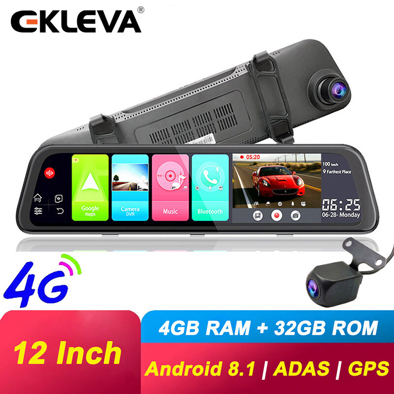 EKLEVA Android 8.1 RAM+ROM 2GB+32GB/4GB+32GB ADAS 10 in 1 DashCam Car DVR Mirror Camera 4G WIFI GPS Bluetooth Full HD 1080P Video Recorder
