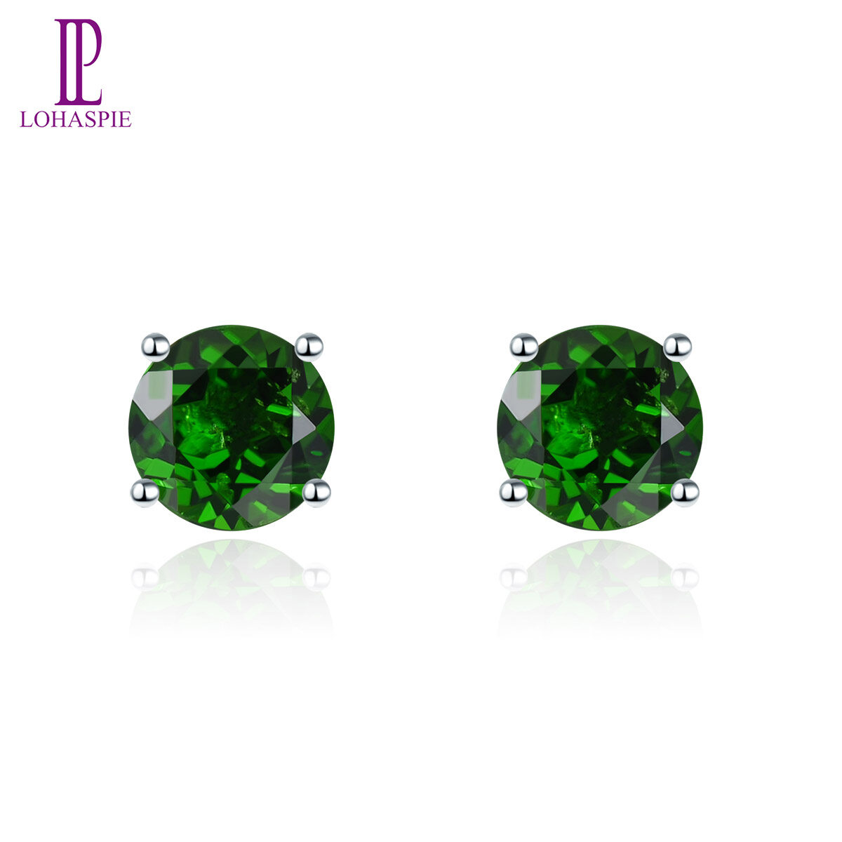 Round Stud Earrings for Women Gift Natural Amethyst Garnet Solid 925 Sterling Silver