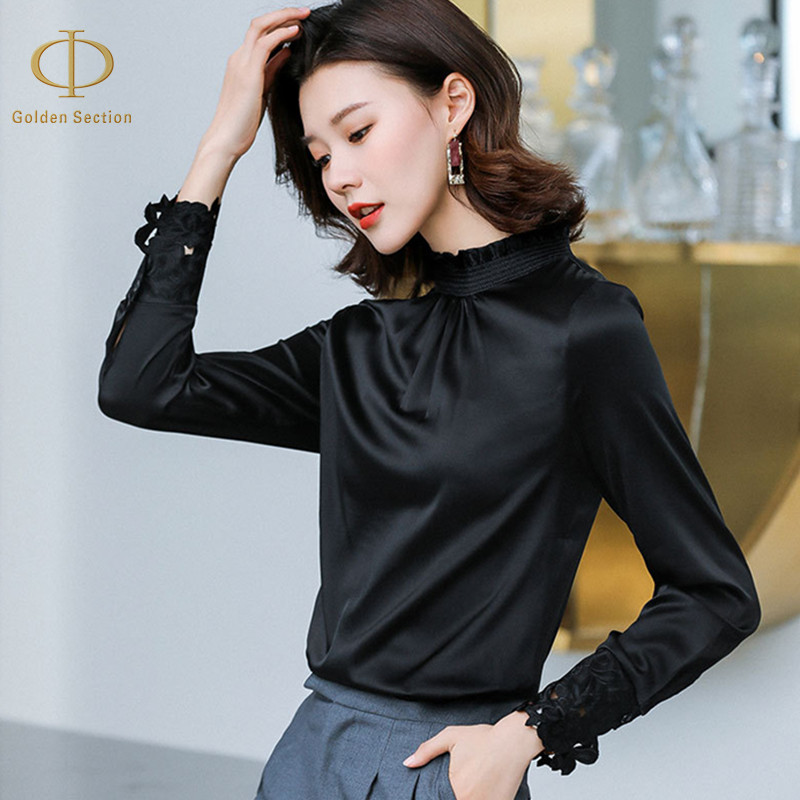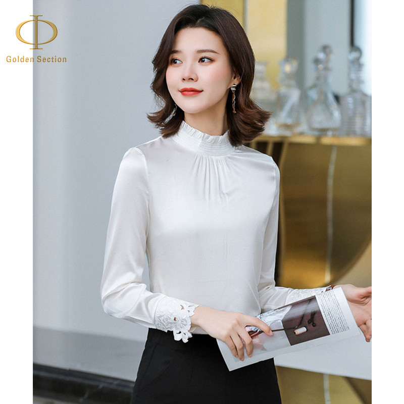 New Arrival Fashion Silk Elegant Women's Tshirt Lady Tops And Blouses Women's Long White And Black Shirts