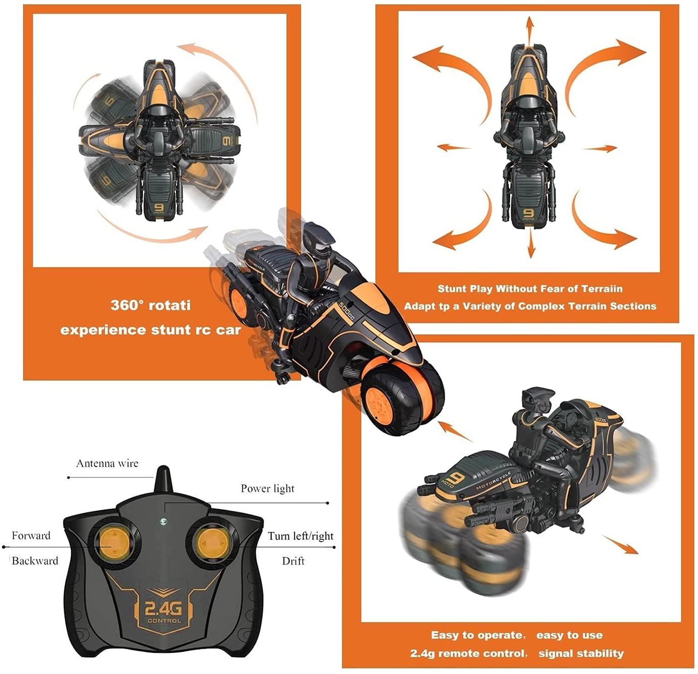 Flytec Rc Motorcycle With Rechargeable Batteries 360 Degree Rotatable Drift Remote Control Motorbikes Kids Radio Control Toys