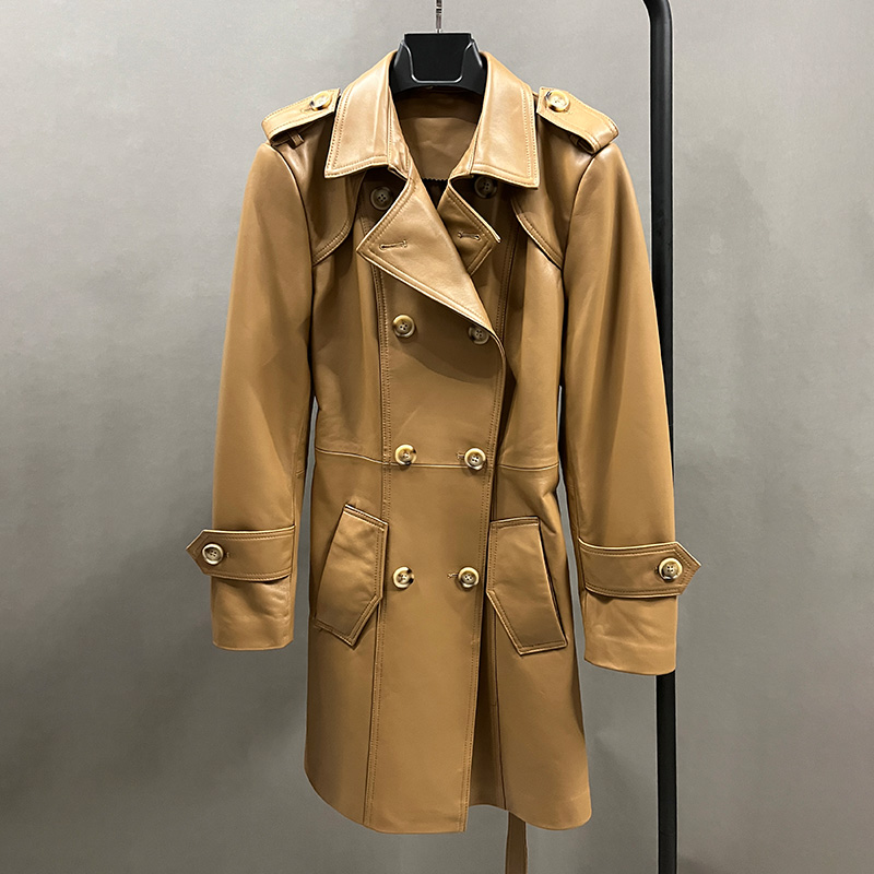 New Trench Coat Sheepskin Leather Shirt Long Bomber Jacket Genuine Leather Jacket With Belt