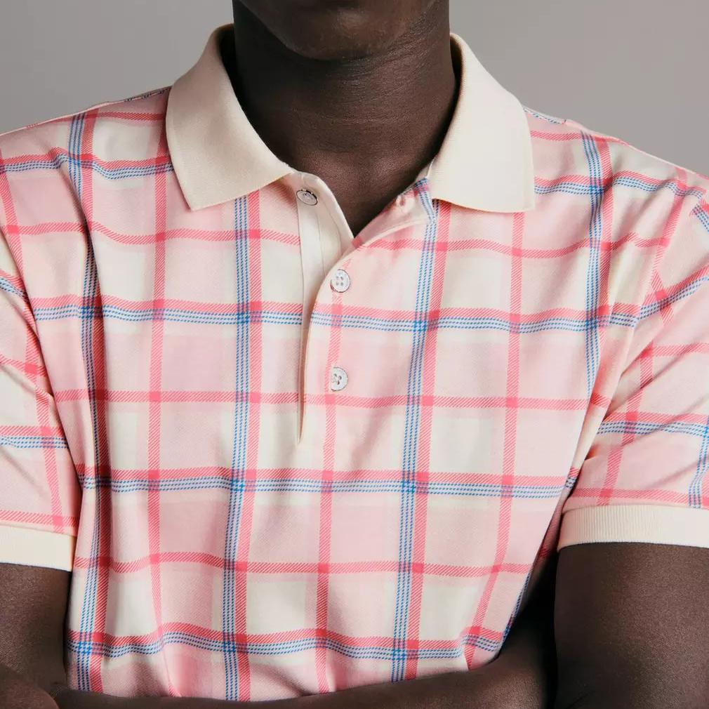 100% Cotton Breathable Interlock Plaid Short Sleeve Polo Shirt For Men Custom Embroidered Logo Street Wear