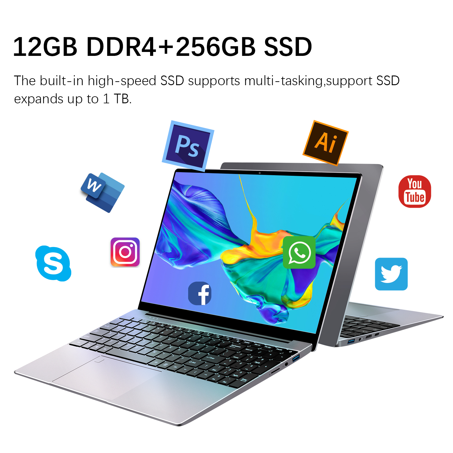 2 ,Large 12GB memory with 256GB SSD storage.