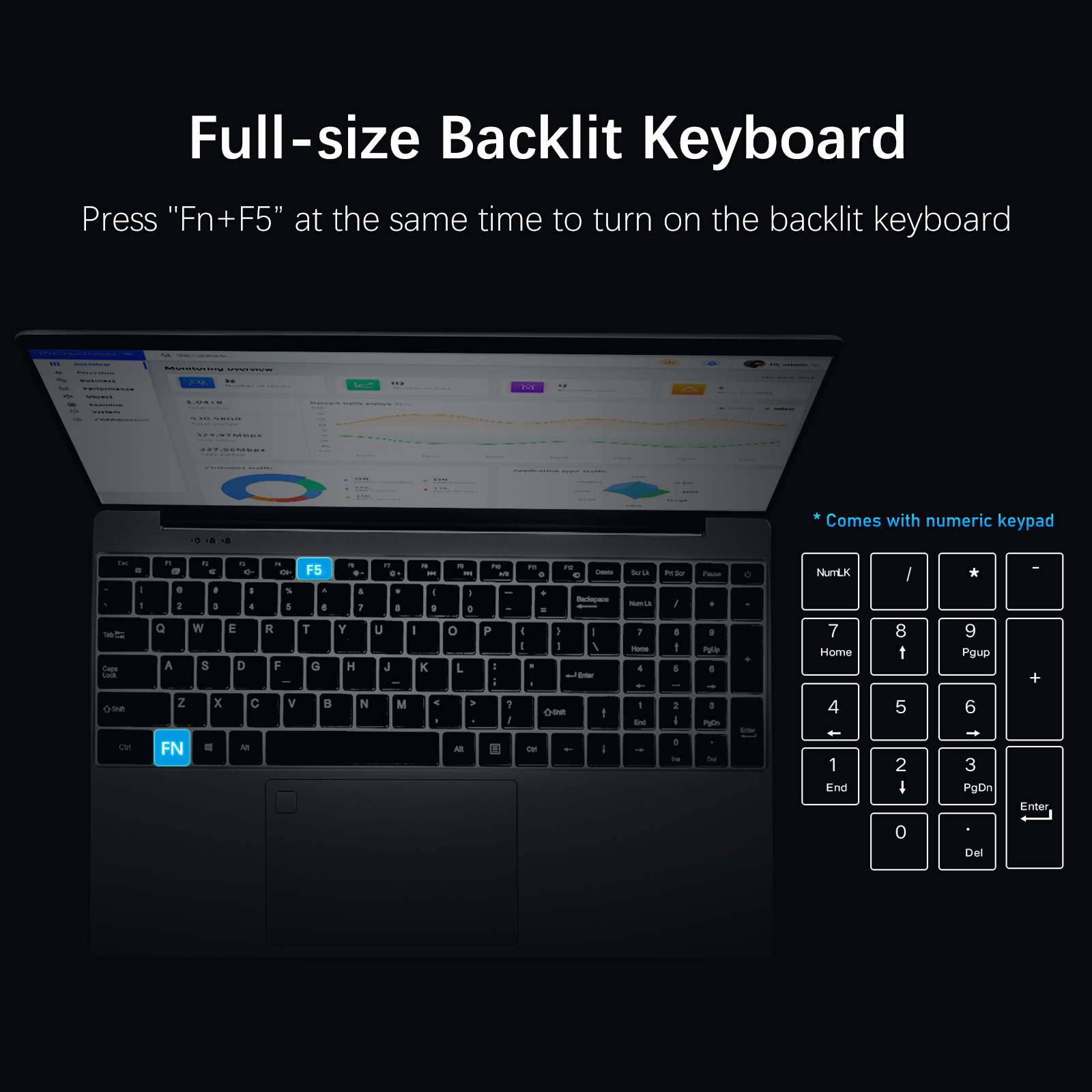 3. Full-size keyboard, 5.9mm ultra-narrow bezel, high screen ratio.