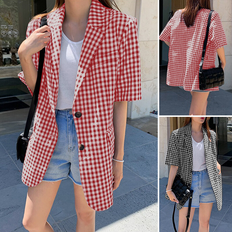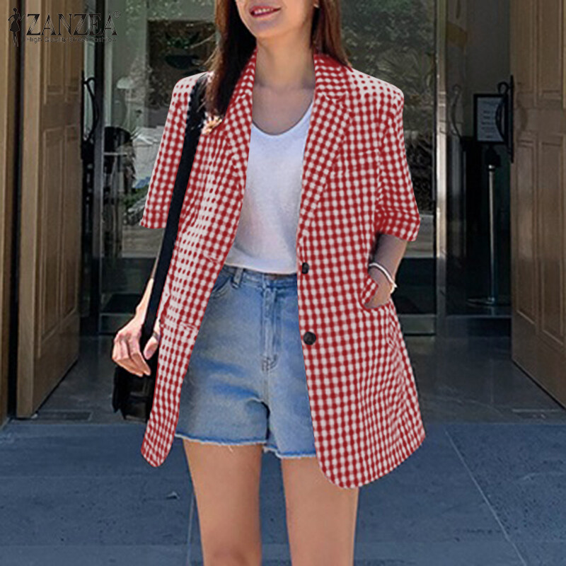 ZANZEA Women Summer Casual Cape Cloak Coat Plaid Check Jackets Tops Plus Blazers Suits