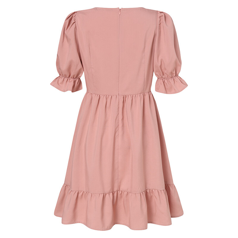 Features:Ruffles Hem,Puff Sleeve,Elastic Cuff