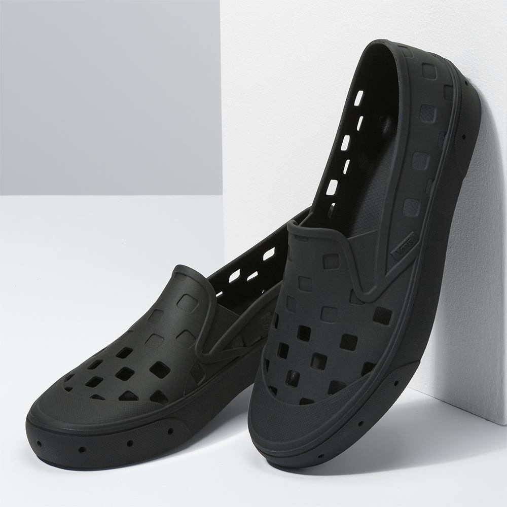 Introducing the first go anywhere, do anything, rinseable Slip-OnSandals aren’t for everyone, but wearing shoes to the beach isn’t always ideal, either—and that’s why we’ve welcomed the Trek Slip-On to the Vans family. Just go surf, rinse, then repeat. Taking the Classic Slip-On silhouette to a whole new level, the Trek Slip-On combines all the Vans DNA that you know and love with a durable, single piece injected construction, deconstructed checkerboard drainage holes for breathability, and an oversized reverse waffle sole for incredible traction in any situation. Designed to be lightweight and fully rinseable, the Trek Slip-On is easy to pack for your next adventure, so you can slip-on and on and on…BIG-TIME TRACTION - Improved traction for any situation, thanks to the oversized reverse waffle sole.BREATHABLE AND RINSABLE - Drainage holes mean that whatever goes in goes right back out.A ONE-PIECE, SOLID, DURABLE DESIGN - A single-piece injected construction makes the Trek Slip-On collapsible and packable, as well as durable.