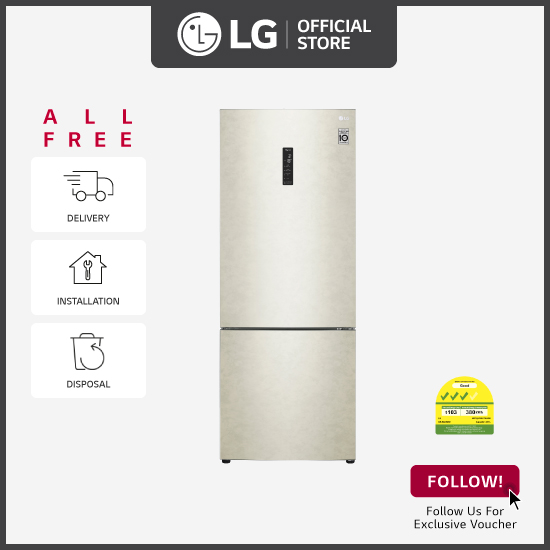 [Bulky] LG GB-B4452SE Bottom Freezer Refrigerator, 451L, Skin Beige + Free Delivery + Free Installation + Free Disposal + Free $50 Grocery voucher