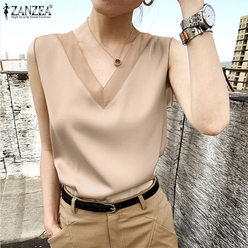 ZANZEA Womens Sleeveless Satin Silky Tops Cocktail Party Gown Blouse Cami Vest Shirt #11