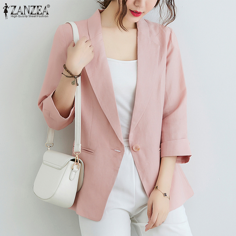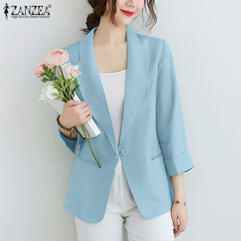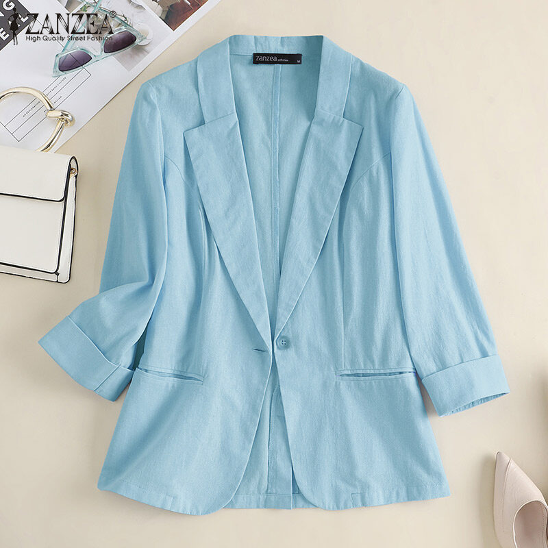 ZANZEA Women Casual Cotton Linen Blazer Jacket Top Ladies Loose Button Up Lapel Coat #11