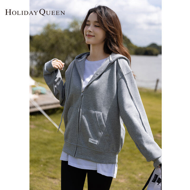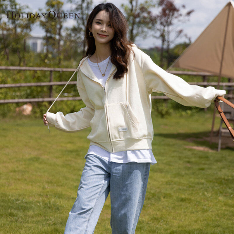 HolidayQueen Korean Women's Hooded Sweater Student Design All-match Loose Cardigan Small Jacket Ins Free Shipping HQ1784