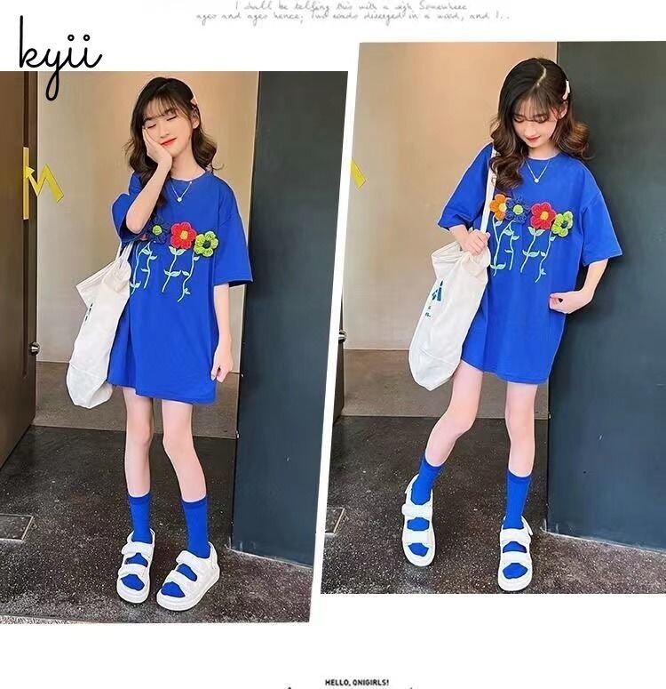 KYII Kids Girls Summer Round-neck Dress Short Sleeve Casual Loose Dress kyii0130