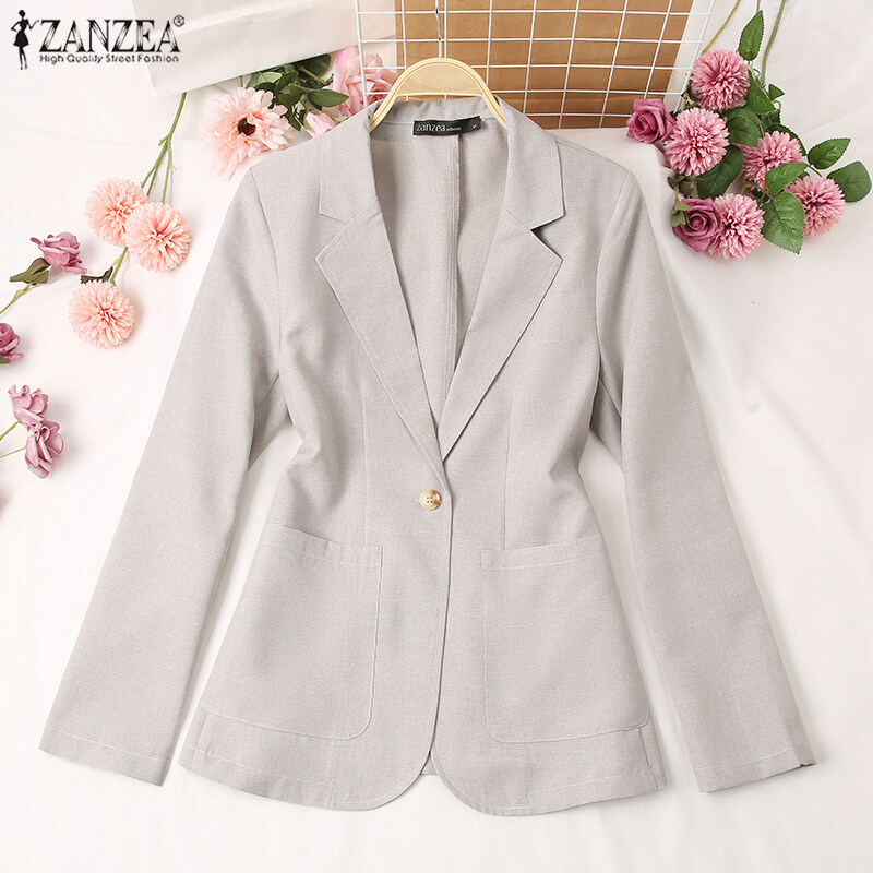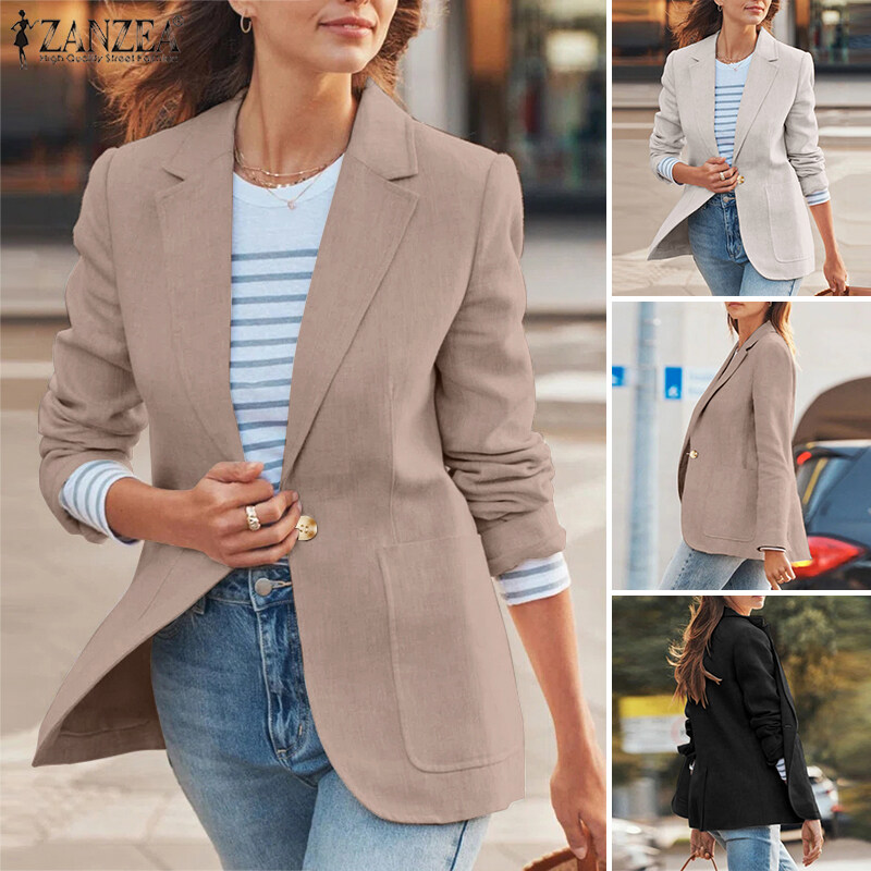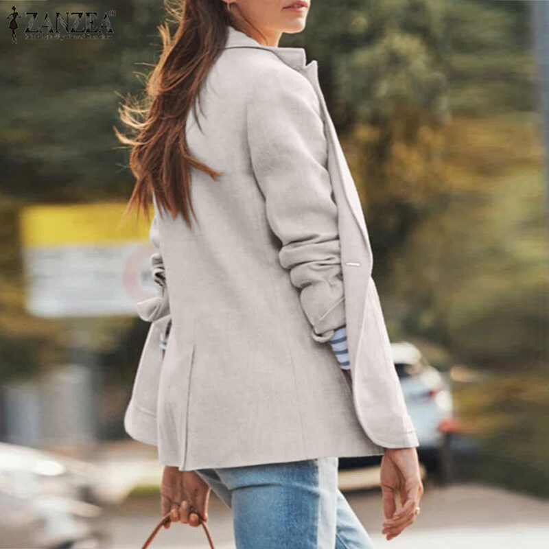 ZANZEA Women Versatile Lapel Long Sleeved Blazer Fashion Fitting Suit Coat Button-Up Outwear #15