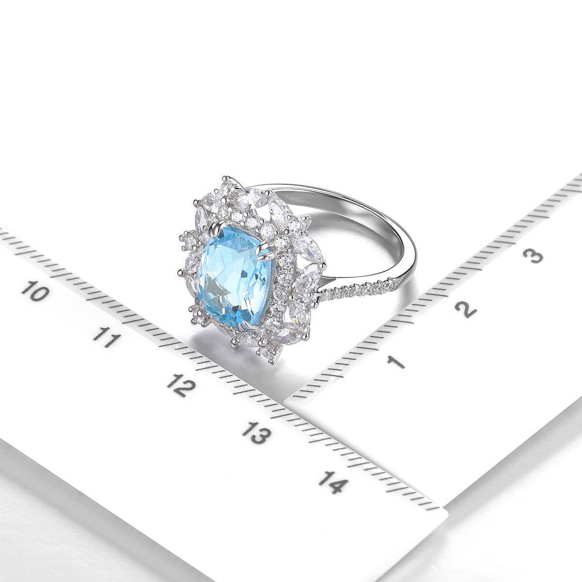 4.3 Carats Ring Silver 925 Original Natural Sky Blue Topaz Light Blue Gemstone Topaz Ring For Lady Jewelry Anniversary Gift