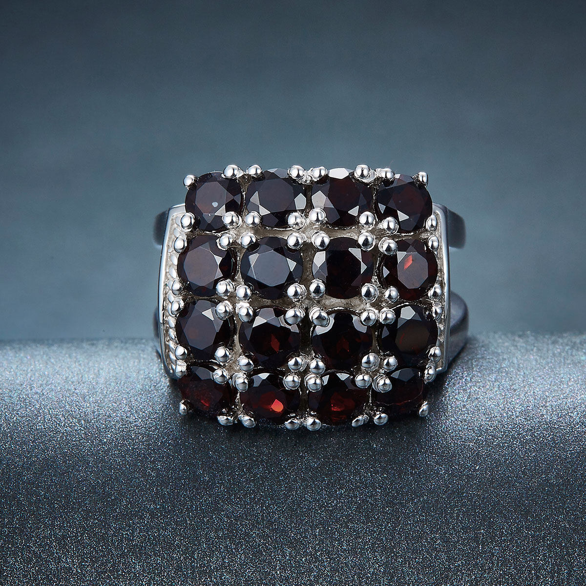 Engagement Rings for Women Gift Natural Black Garnet 925 Sterling Silver Cluster Gemstone Party