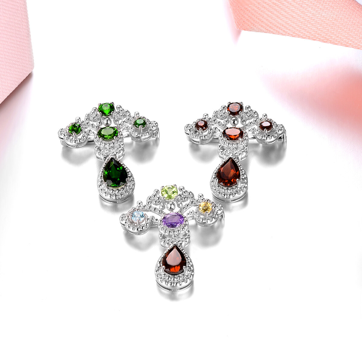 Multi-Color Women's Brooch Natural Real Gemstone 2.95 Carats Garnet Amethyst Peridot Elegant Classic Jewelry Design For Birthday Gifts