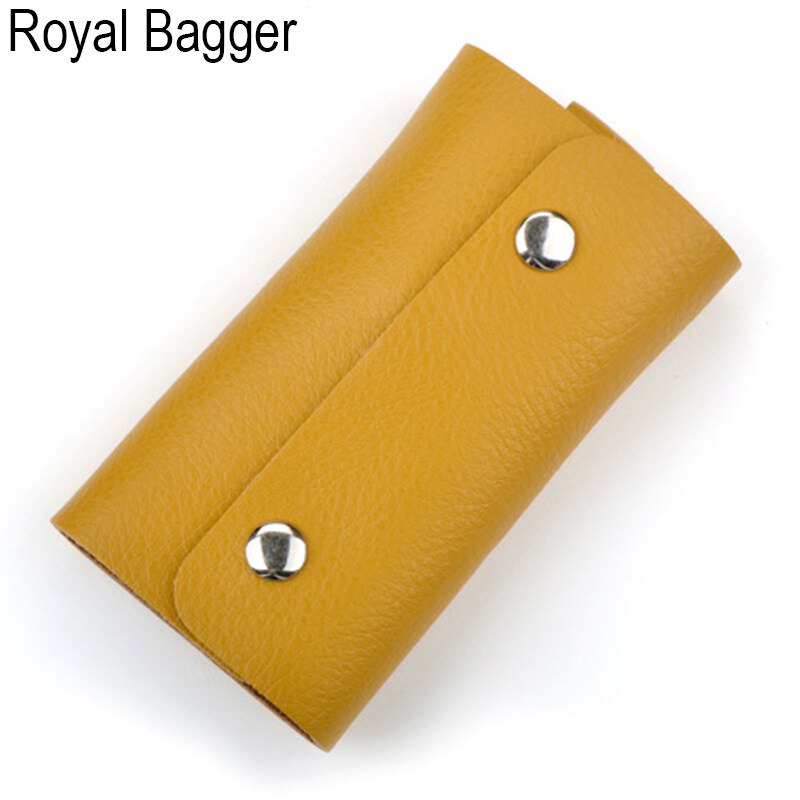 ROYAL BAGGER Genuine Cow Leather New Couples Ladies Key Bag For Women Girls Boys Men Card Purse Korean Style Keys Bags Fashion Wallet Sets Holders