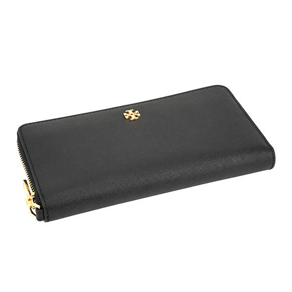 Tory Burch Wallet With Gift Paper Bag Long Wallet Emerson Saffiano Leather Wristlet Wallet Black # 74179