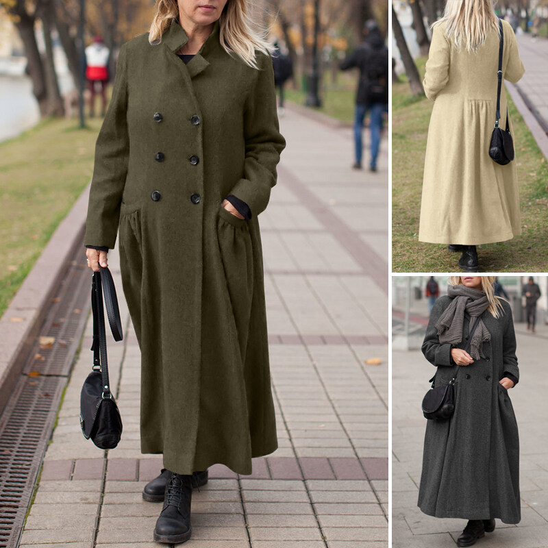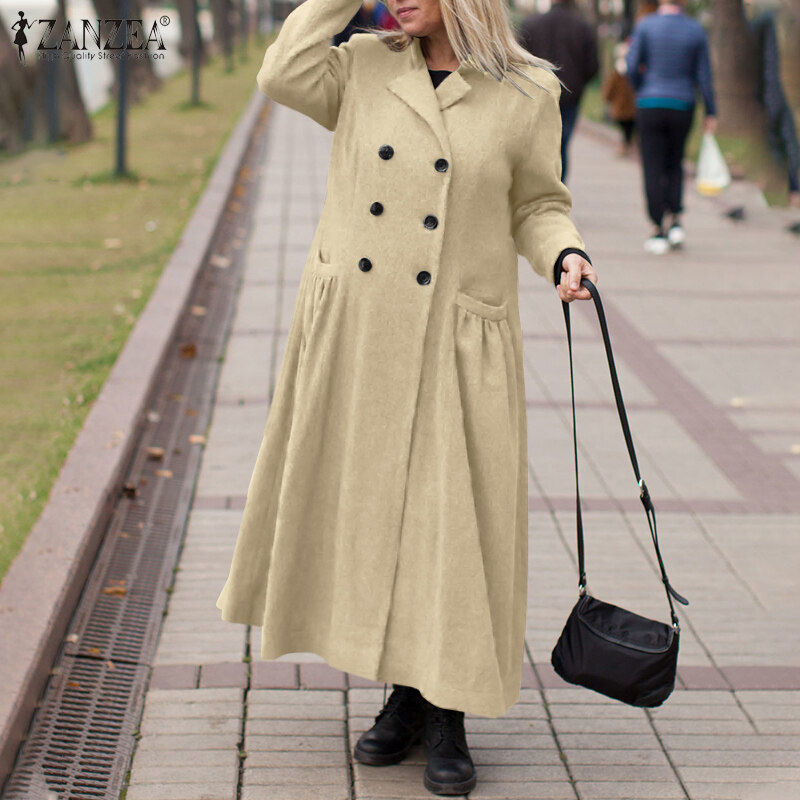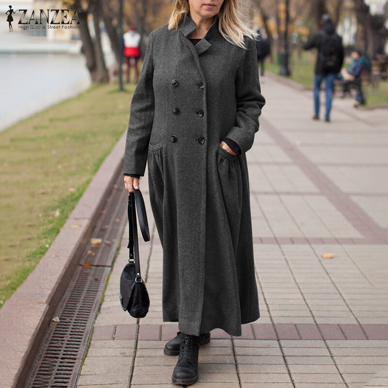 [Clearance Sale] ZANZEA Womens Winter Think Coats Full Sleeve Tunic Casual Loose Trench Long Maxi Coat CLE #15