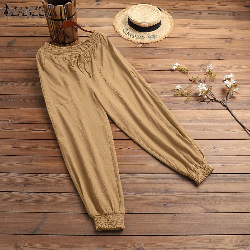 [Clearance Sale] ZANZEA Women's Legging Loose Wide Leg High Waist Pants Casual Wrap Trousers Plus CLE #1