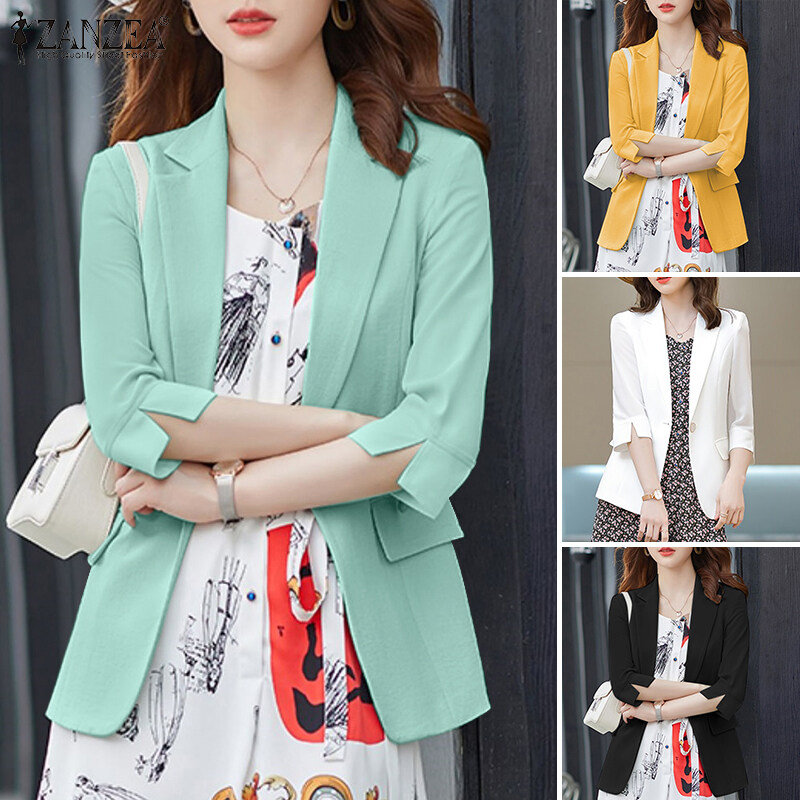 ZANZEA Korean Style Women's Blazer Button Up Solid Office OL Work Turn-Down-Collar Suits #11