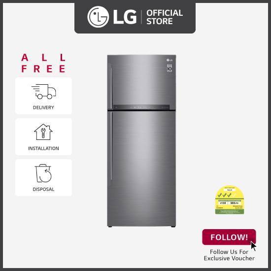[Bulky] LG GT-B4387PZ 2 Doors Inverter Top Freezer Refrigerator, 438L, Platinum Silver + Free Delivery + Free Installation + Free Disposal