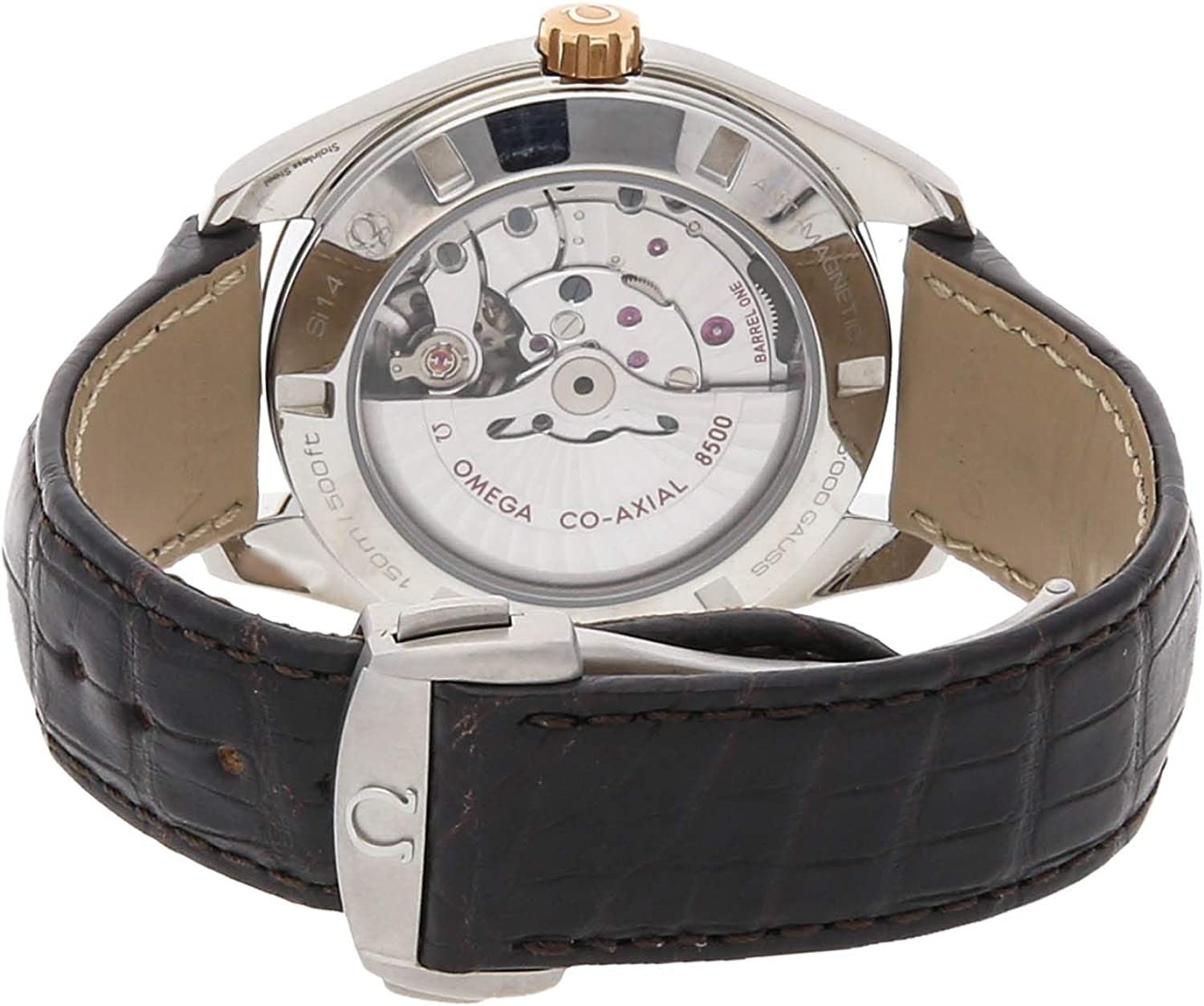 Omega Seamaster Aqua Terra 150m (23123422102001) self-winding automatic watch features a 41.5mm stainless steel case with an 18k rose gold bezel surrounding a silver Teak dial on a brown alligator strap with a stainless steel deployant buckle. Functions include hours minutes seconds and date. This watch comes with box and papers. Majority of time remaining on the factory warranty!