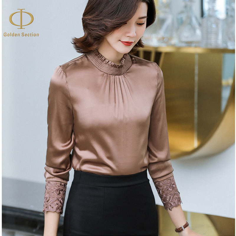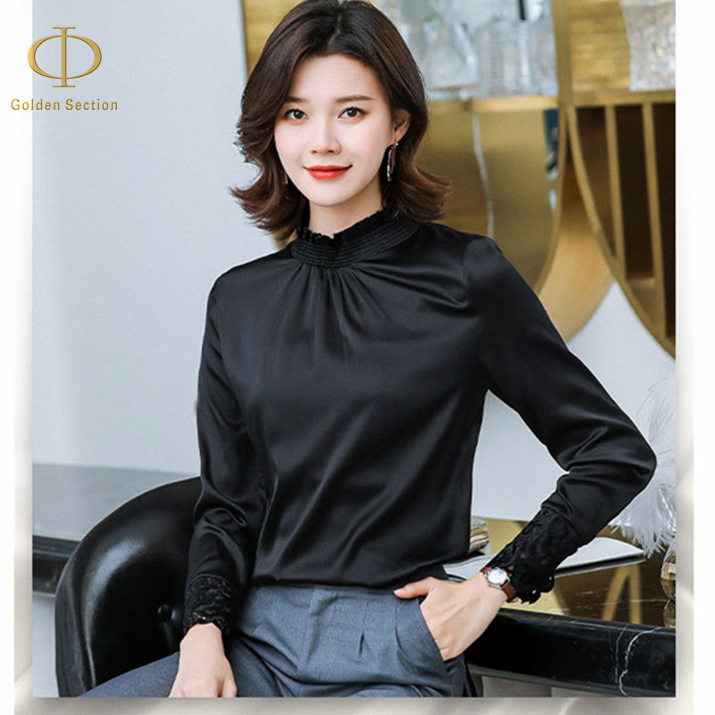 New Arrival Fashion Silk Elegant Women's Tshirt Lady Tops And Blouses Women's Long White And Black Shirts