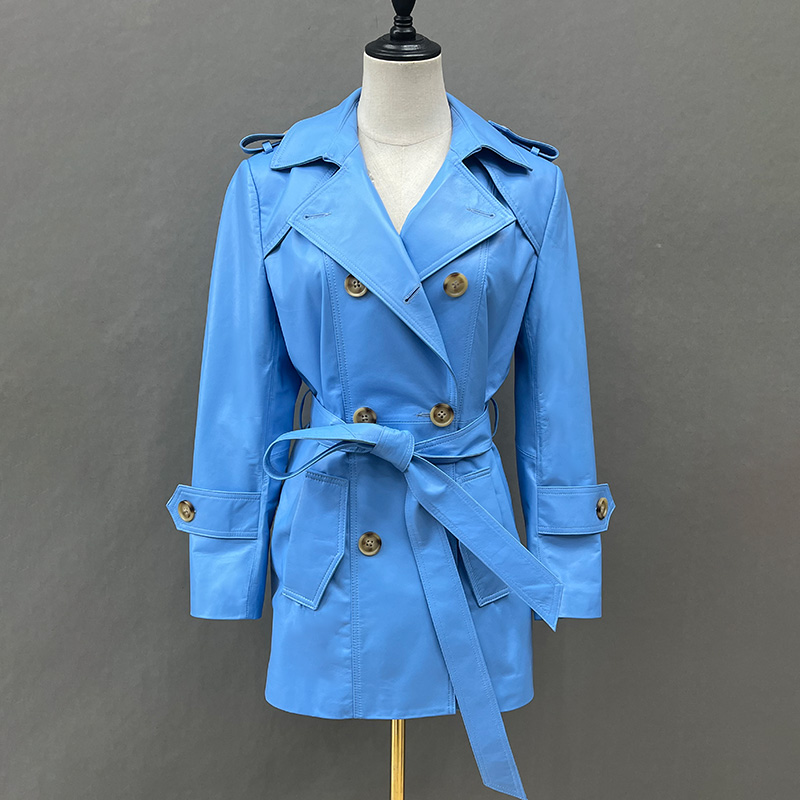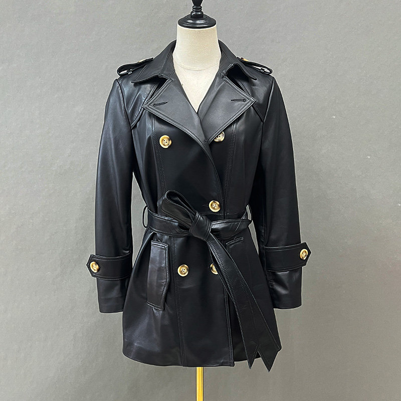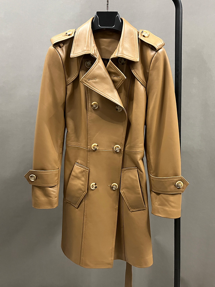 New Trench Coat Sheepskin Leather Shirt Long Bomber Jacket Genuine Leather Jacket With Belt