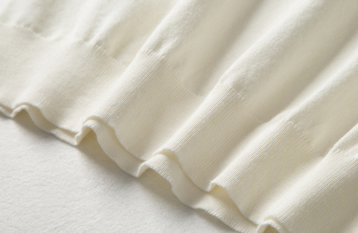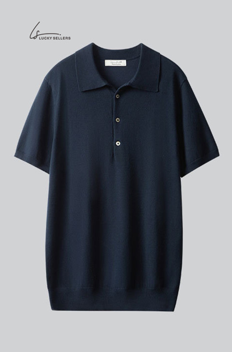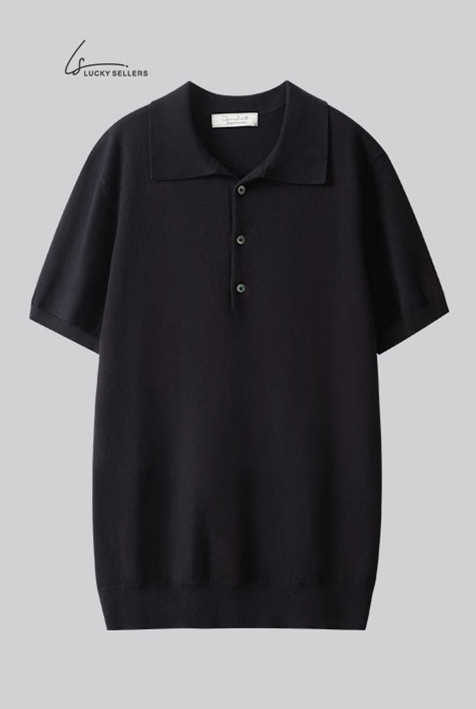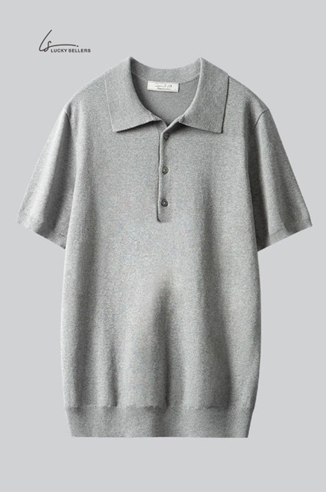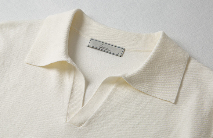 Lapel No Button 100% Cotton Ivory White Polo Shirt High-end Business Casual Slim Knit V-neck Short Sleeve Men's T-shirt