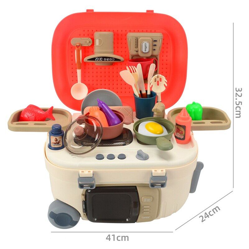 HYG Kitchen Toys Cooking Toys 79PCS Children's Kitchen Toys Baby Family Spray Kitchen Suitcase Storage Kitchen Toys Small Kitchen Toy Set Simulation Spray Toys Sink Running Water and Other Kitchen Acc