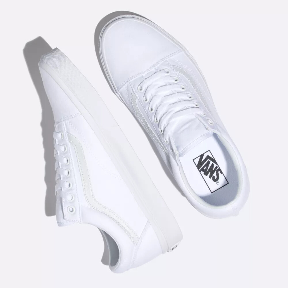 The Old Skool, the Vans classic skate shoe and first to bare the iconic sidestripe, is a low top lace-up featuring sturdy canvas and synthetic uppers, re-enforced toe caps to withstand repeated wear, padded collars for support and flexibility, and signature rubber waffle outsoles.