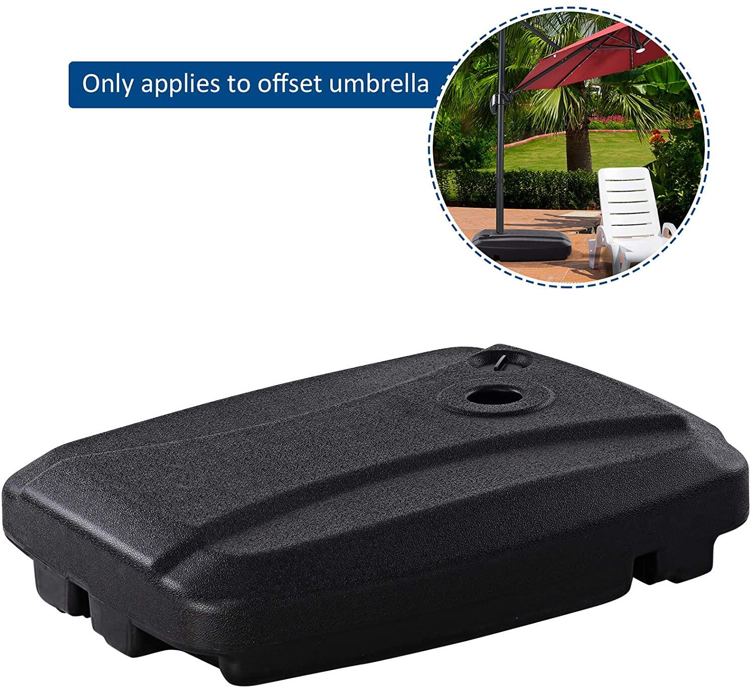 Name: Umbrella BaseMaterial: plasticWeight: 8000gProduct size: L80*W60*H16CM/31.50*23.62*6.30inProvide weight: 60KGInsert hole size: 38mm/1.50in,48mm/1.89inRecommended umbrella size height: 2.7m/,3.0m/,3.3m/Packing: boxPacking List: