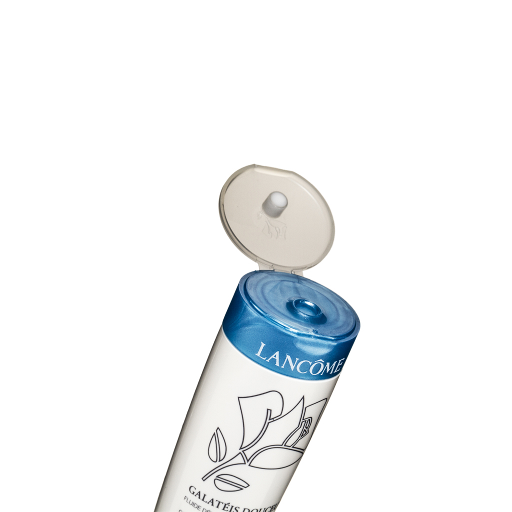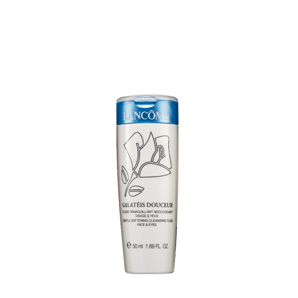Lancôme Galatéis Douceur - Gentle Cleanser For Face And Eyes (50ml) Its light and milky formula can apply evenly on face, creates a clean base in the morning, and in the evening it removes makeup and any other impurities from the day. Enriched with papaya and pineapple extract, can penetrate the pores, thoroughly remove make-up and dirt, metabolize the stratum corneum, and leave skin feeling fresh and clean.Product Features:•The formula enriched with papaya and pineapple extract, effective cleansing while moisturizing the skin.•Gentle nature, liquid and silky texture. Take an appropriate amount to massage your face then wipe clean or rinse with water, the usage is easy and convenience. •Will not cause dryness after used, leaves skin supple and refreshing, also promotes the absorption of subsequent skin care products.
