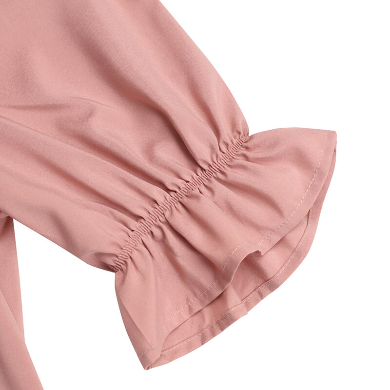 Features:Ruffles Hem,Puff Sleeve,Elastic Cuff