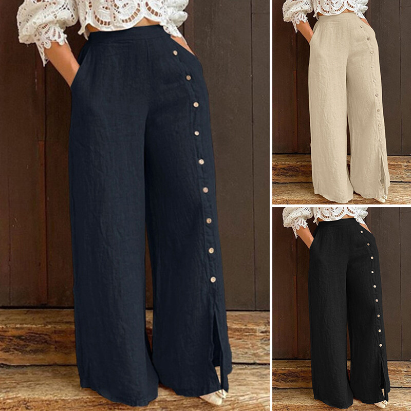 Features:Pure Cotton,Wide-legged,Trousers slit