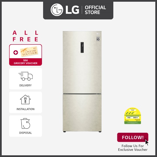 [Bulky] LG GB-B4452SE Bottom Freezer Refrigerator, 451L, Skin Beige + Free Delivery + Free Installation + Free Disposal + Free $50 Grocery voucher