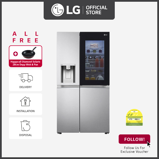 [Bulky] LG GS-X6172NS side-by-side-fridge with InstaView Door-in-Door™, 617L, New Noble Steel + Free Delivery + Free Installation + Free Disposal + Free Happycall Diamond Solaris I.H.28cm Depp Wok & F