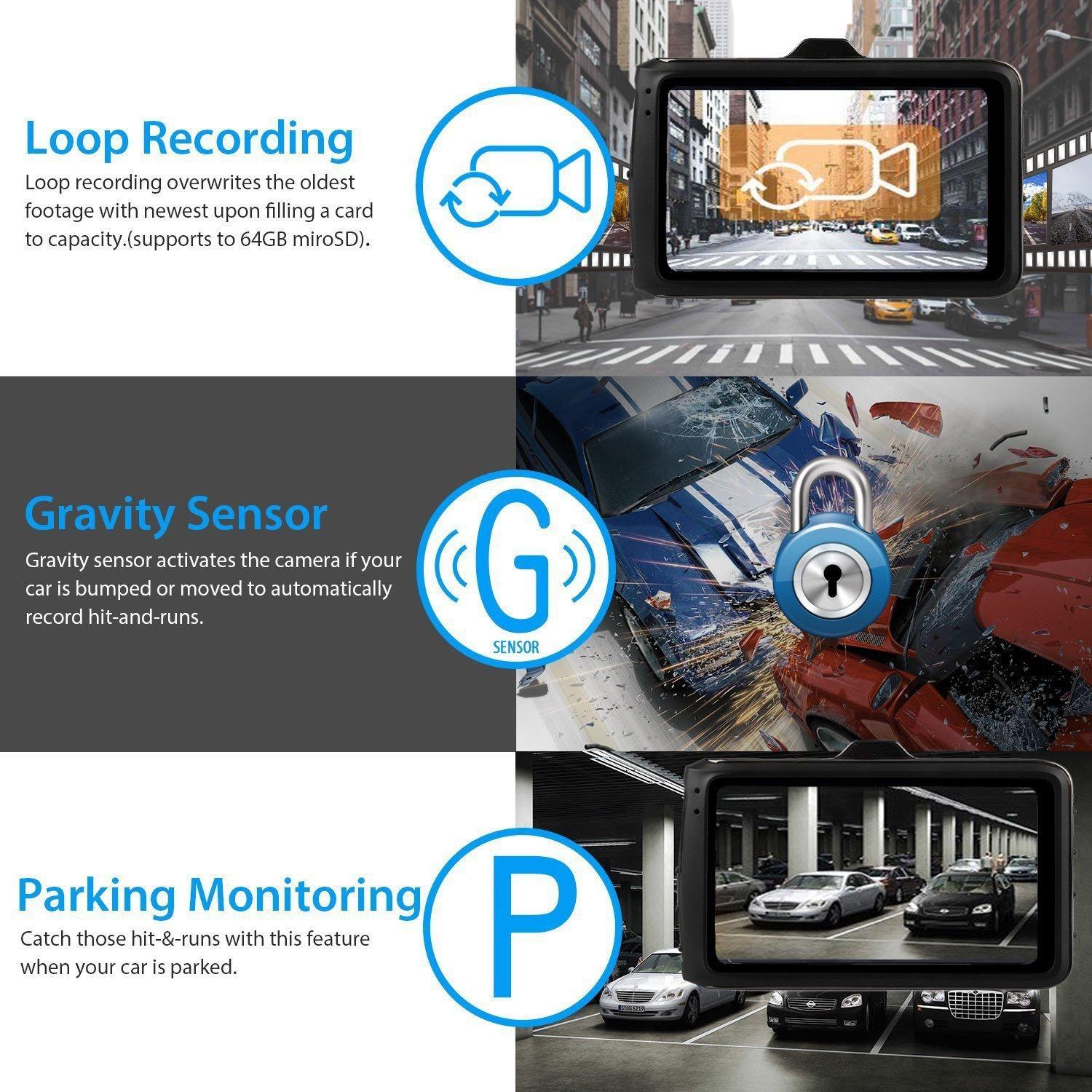 EKLEVA Dash Cam 3 inch Screen 170 Degree Wide Angle Full HD 1080P Car dashboard Camera Vehicle On-dash Video Recorder Camcorder with G-Sensor Loop Recording Night Vision