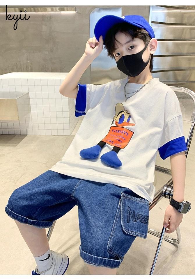KYII Boys summer Stripe short sleeves Shirt two-piece set kyb021