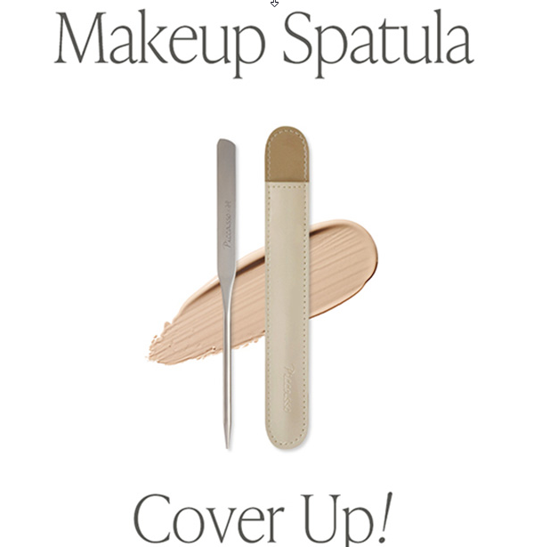 - Apply the product at a 90-degree angle on the corner of the spatula and spread it thinly on the desired area, and use a sponge or brush to adhere to the skin. After using the spatula, wipe it clean and store it in the case