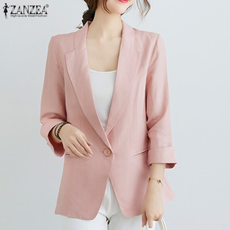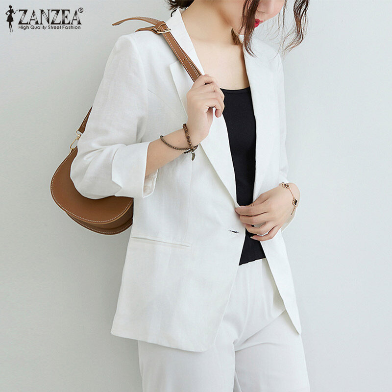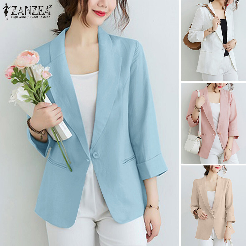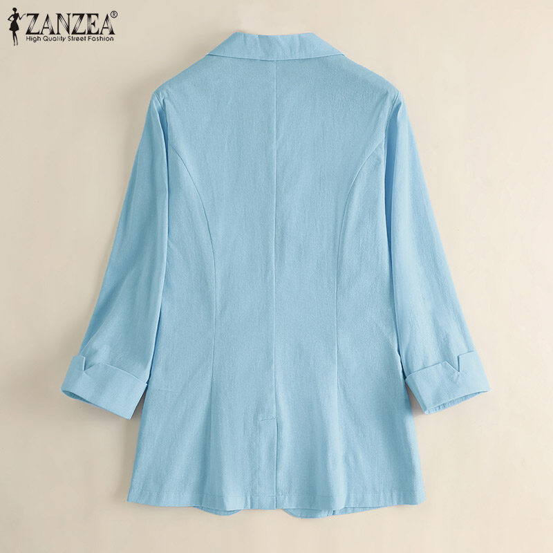 ZANZEA Women Casual Cotton Linen Blazer Jacket Top Ladies Loose Button Up Lapel Coat #11