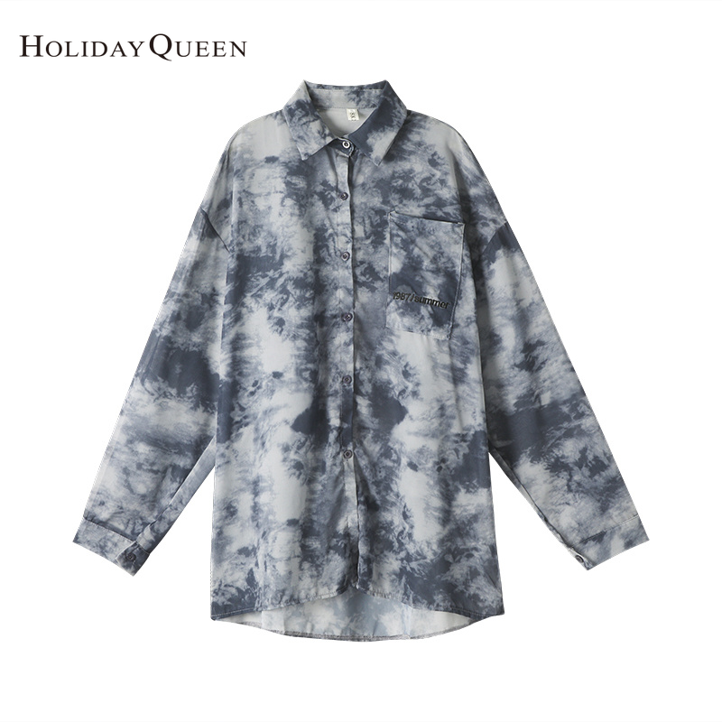 HolidayQueen Tie-Dye Shirt Spring Top Women's Design Small Long Sleeve Sunscreen Shirt Retro Loose Thin Port-Style Shirt Women Free Shipping HQ1707