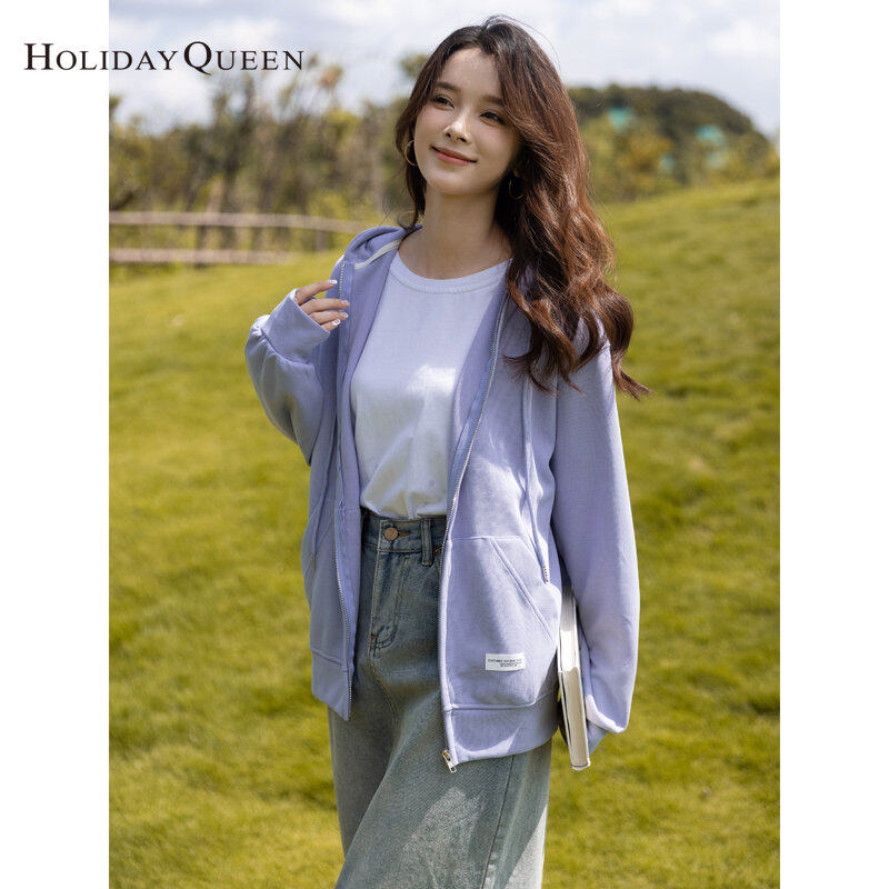 HolidayQueen Korean Women's Hooded Sweater Student Design All-match Loose Cardigan Small Jacket Ins Free Shipping HQ1784