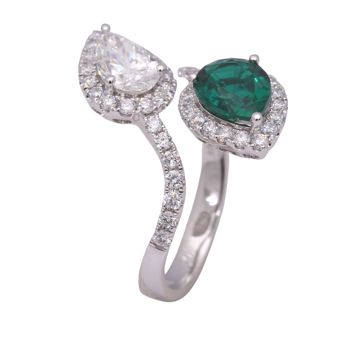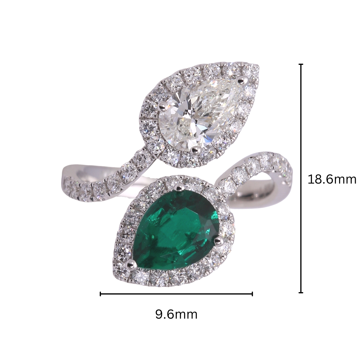 TAKA Jewellery Pear Shape Lab Grown Emerald and Diamond Ring 10K