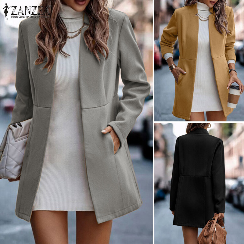 ZANZEA Women's Elegant Commute Long Sleeve Coat Versatile Office OL Collect Waist Pleated Blazer #15