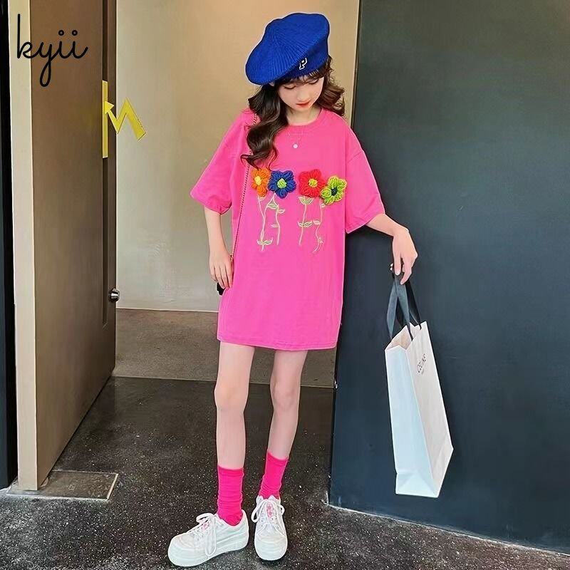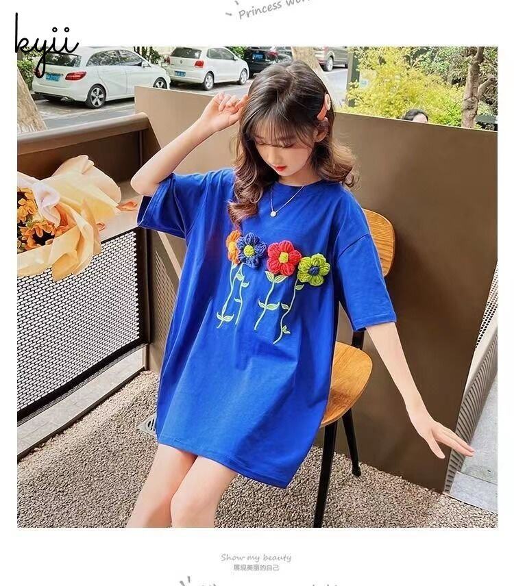 KYII Kids Girls Summer Round-neck Dress Short Sleeve Casual Loose Dress kyii0130