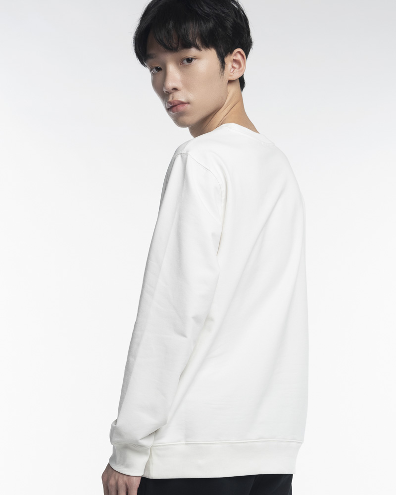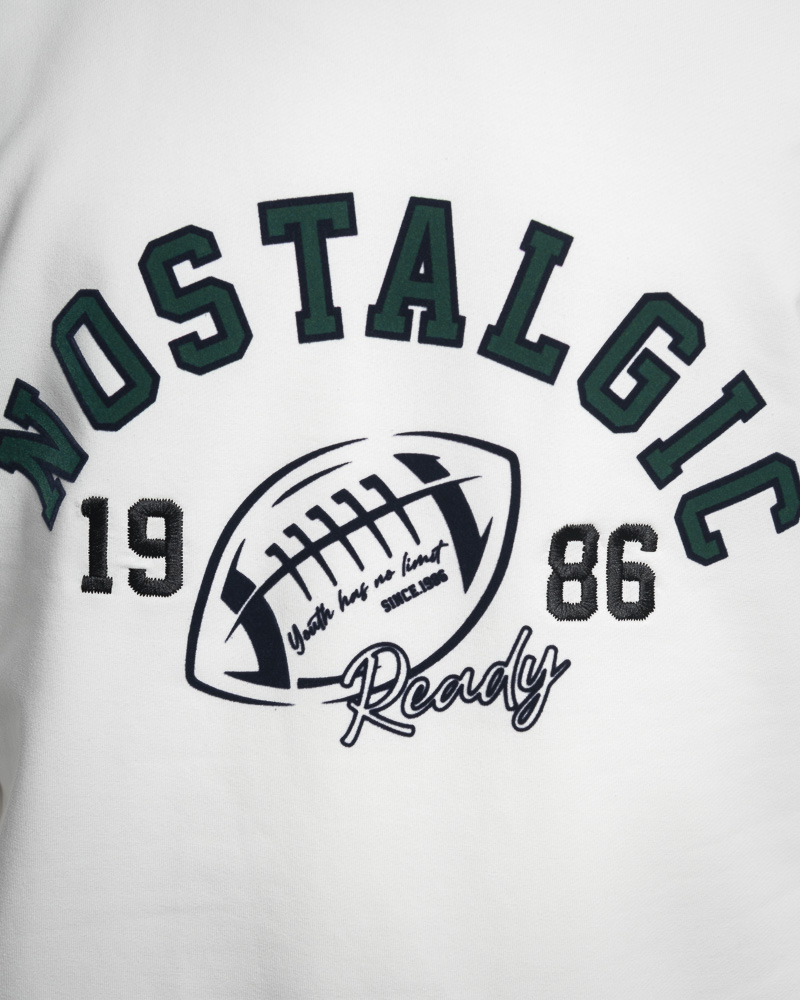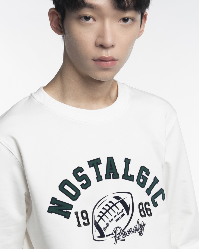 Yishion Men Solid Coloured Long Sleeve Sweatshirt with NOSTALGIC Slogan (White)