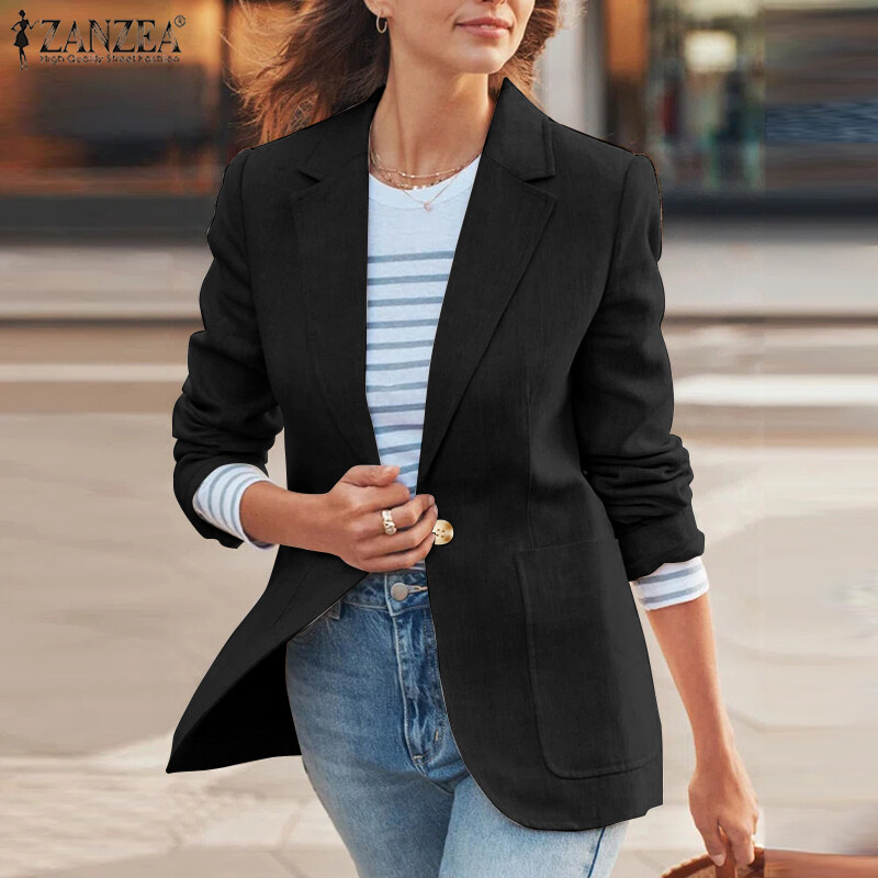 ZANZEA Women Versatile Lapel Long Sleeved Blazer Fashion Fitting Suit Coat Button-Up Outwear #15