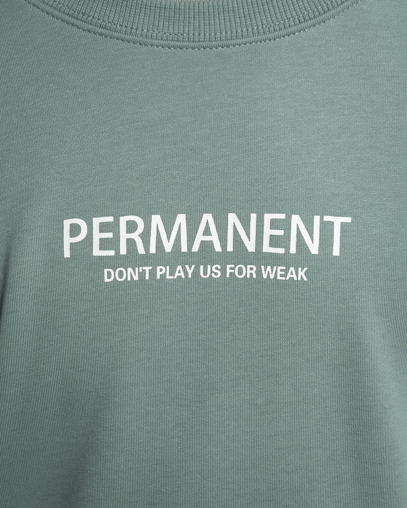 Regular Solid Coloured Long Sleeve Sweatshirt with Round Neck. Comes with Permanent Slogan at the front. Made of cotton.